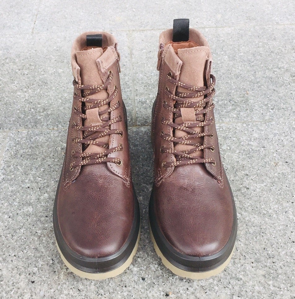 Moški visoki temno rjavi usnjeni gležnjarji z vodoodbojno zračno membrano, podlogo iz blaga, profiliranim gumijastim podplatom. Spominska pena poskrbi za vaše udobje, podplat je izdelan tako, da blaži udarce pri hoji.Barva: rjava