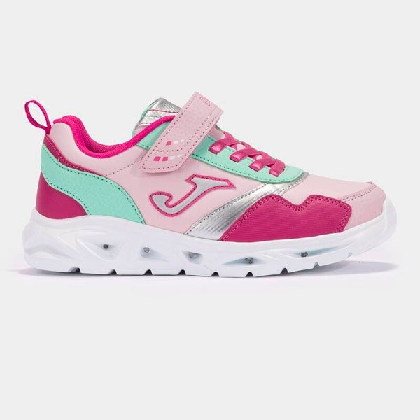 Otroški športni čevlji z lučkami. Zunanji del iz umetnega materiala,notranjost iz blaga, spodnji del iz gume. Zapenjanje na ježka.