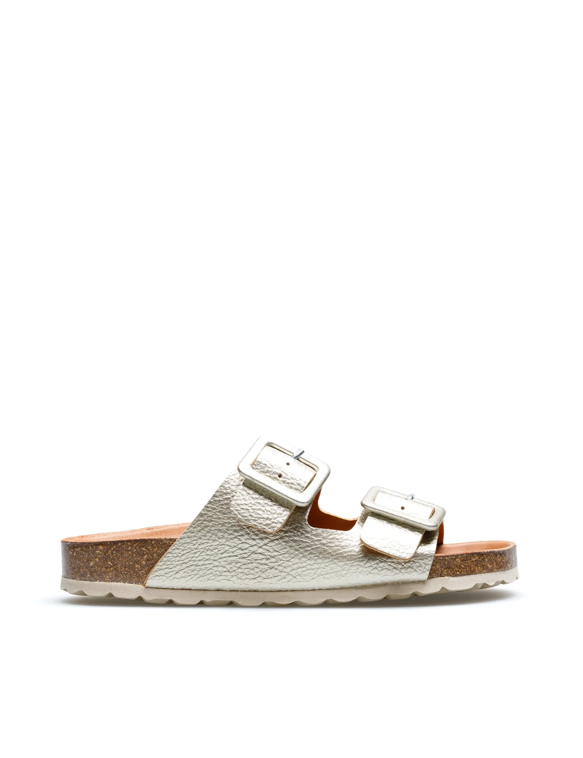 Ženski usnjeni natikači Verbenas, prilagodljiva širina paščkov.Zgornji in notranji del iz usnja, podplat iz umetne mase.Barva: zlata