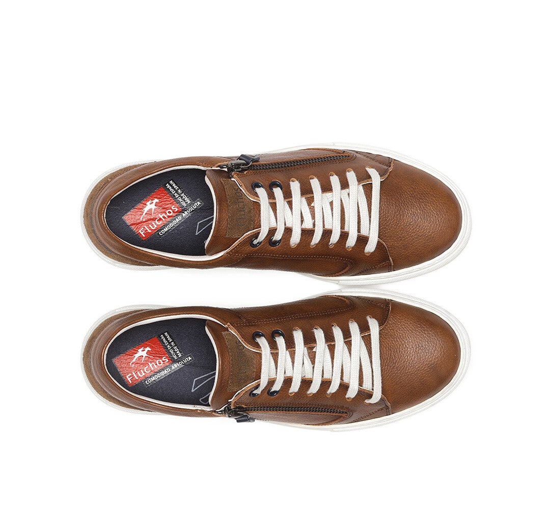 Moški čevlji Fluchos, stranska zadrga za enostavno obuvanje, zunanji del iz usnja, notranjost iz mikrofibre, gumijast podplat.Barva: rjava