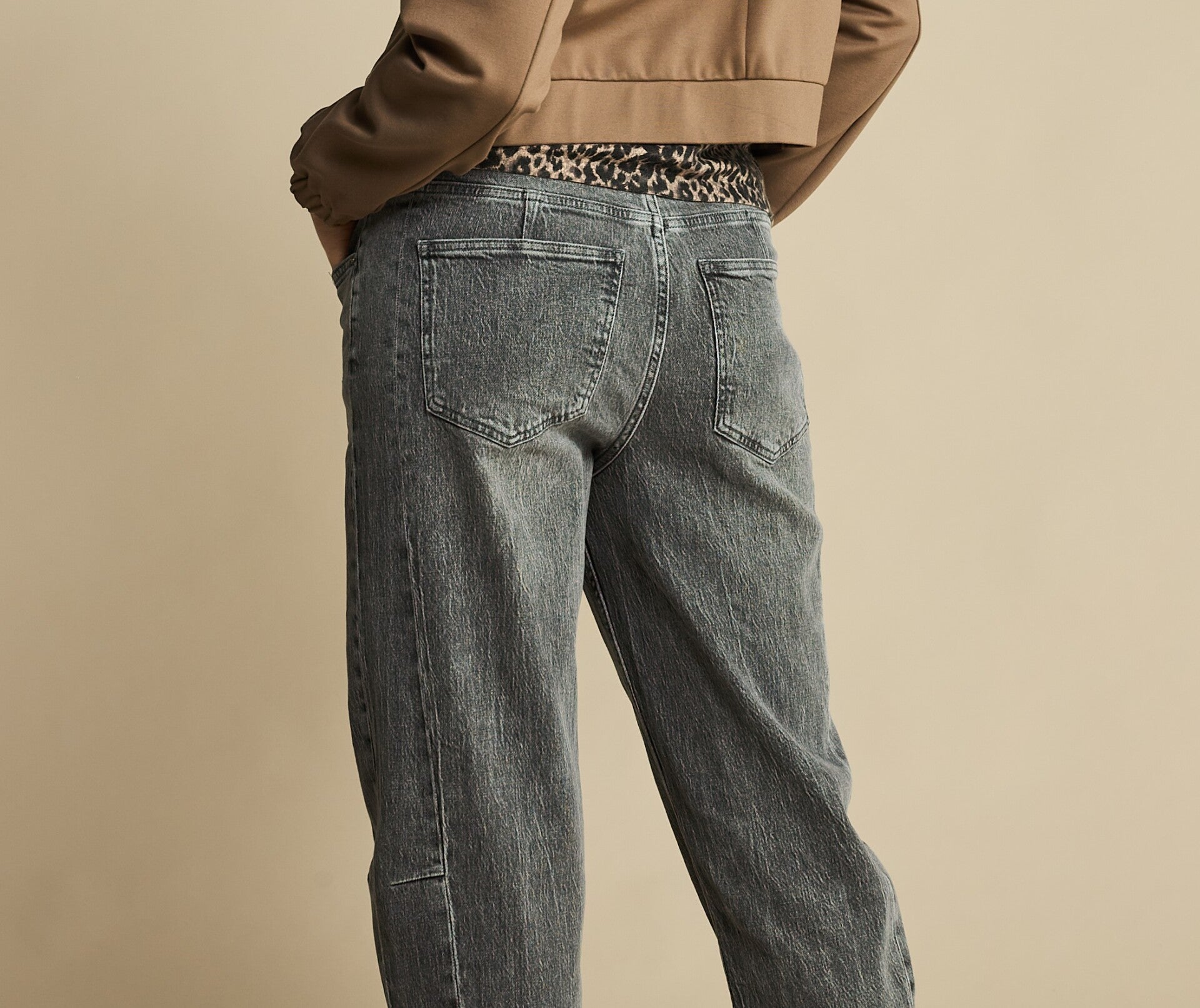 Ženske jeans hlače Red Button, sproščena in elegantna 'barrel legs' sodčasta oblika hlačnic.Sestava: 99% bombaž, 1% elastanBarva: siva