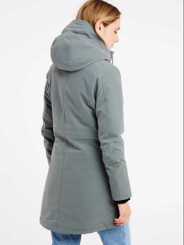 Ženski dolg softshell zimski plašč Protest s kapuco, dvosmerna zadrga, notranja rokavička, Geotech vodoodbojnost / zračnost 10000 mm/24hBarva: sivo zelena