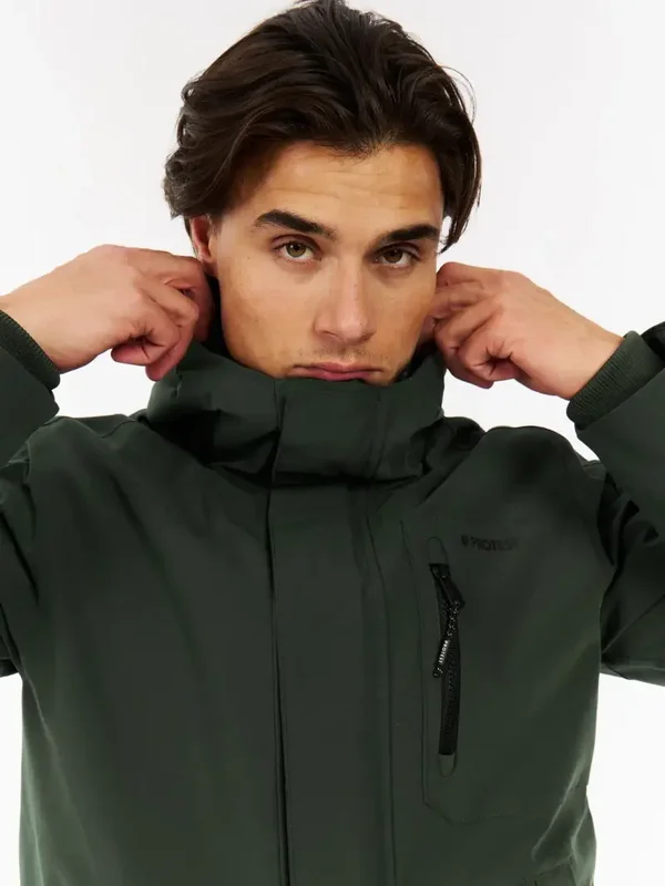 Moška zimska 'outdoor' jakna Protest, podaljšan model. Dva stranska žepa, prsni žep, dvosmerna zadrgam kapuca. Vodoodpornost 10000mm/24h, paropropustnost 10000g/24 h. Barva: zelena