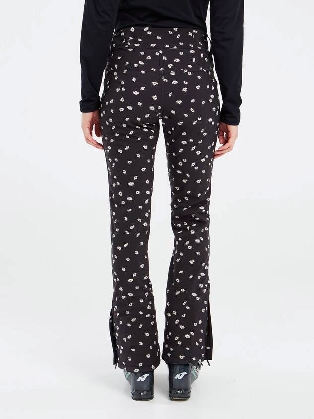 Ženske softshell smučarske hlače GEOTECH 10000 mm / 24 h. Podloga iz mikroflisa, dva stranska žepa, prilagodljic pas s pasnicami, notranja podloga z gumirano obrobo za boljši oprijem smučarskih čevljev, zadrga za lažje oblačenje.
