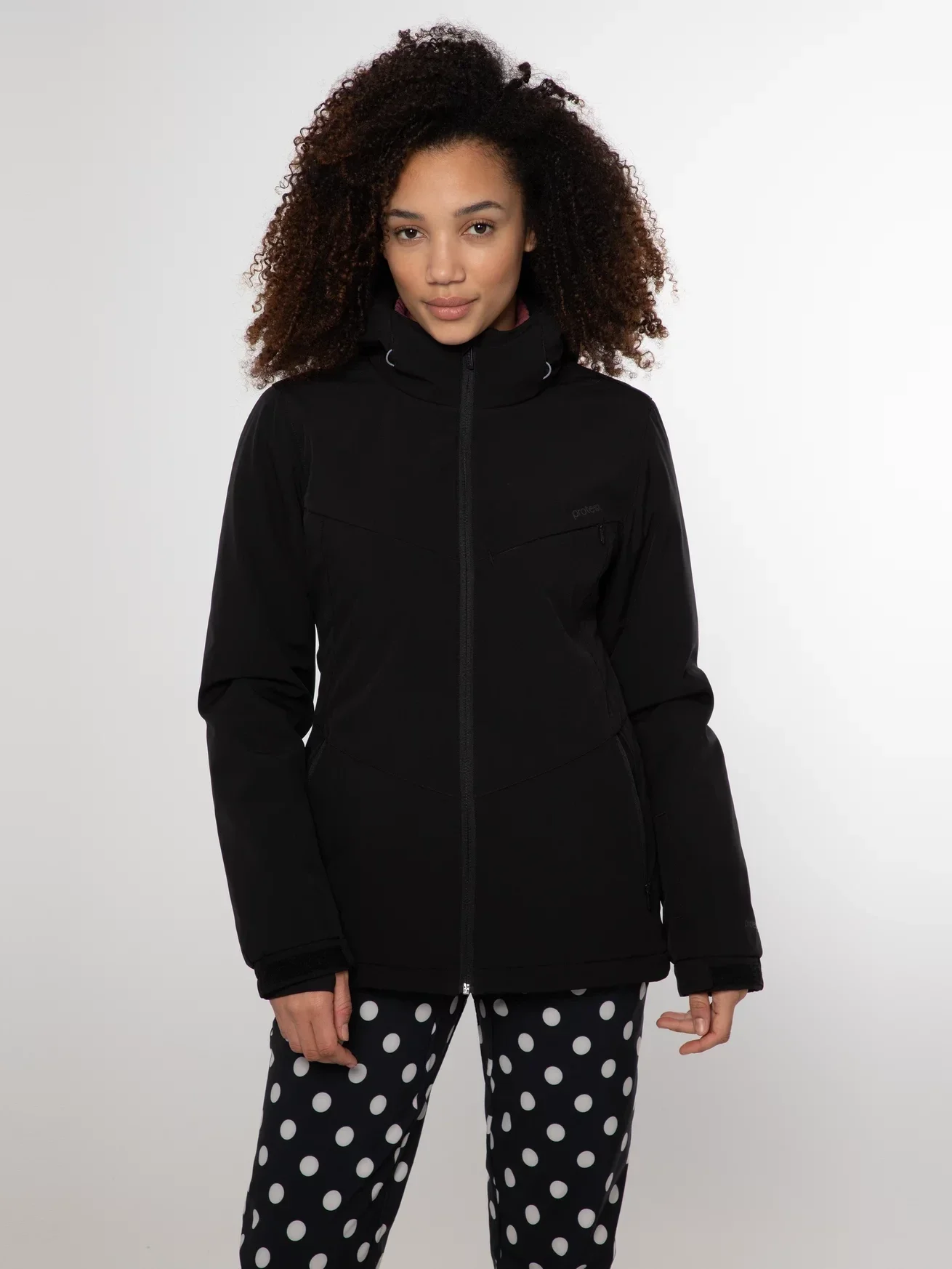 Ženska smučarska jakna Geotech vodoodbojnost 10000 mm/24h, zračnost 10000g/24h, rahlo podaljšan model.Sestava: 94% poliester, 6% elastan, podloga in polnilo 100% poliester.Barva: črna
