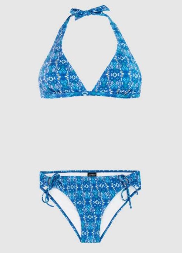 Ženske kopalke Protest, 'halter' nedrček za boljšo oporo, izvlečne blazinice, prilagodljive 'regular' hlačke.Sestava: 82% poliamid, 18% elastanBarva: modra